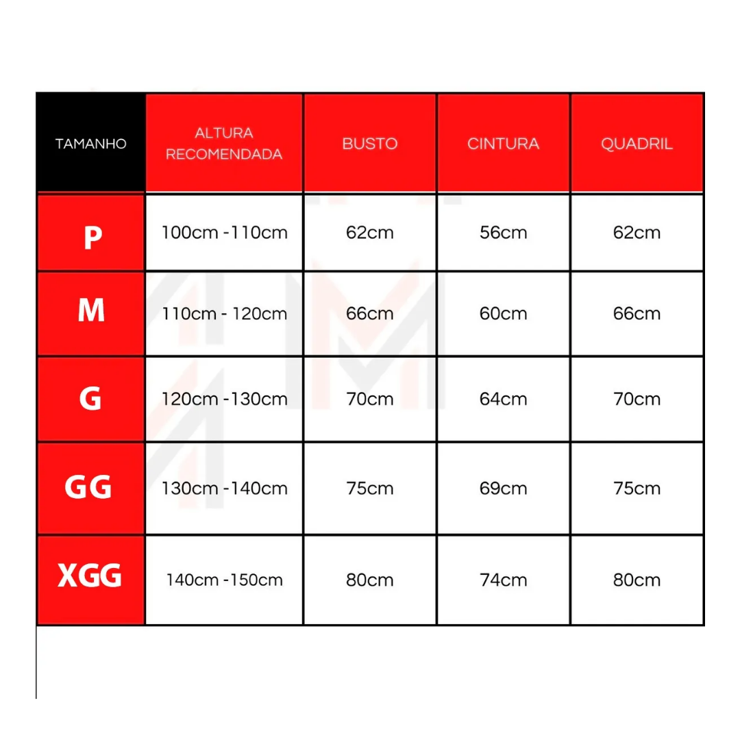 - Luvas e Pés fazem parte da fantasia e são produzidos no mesmo material da fantasia